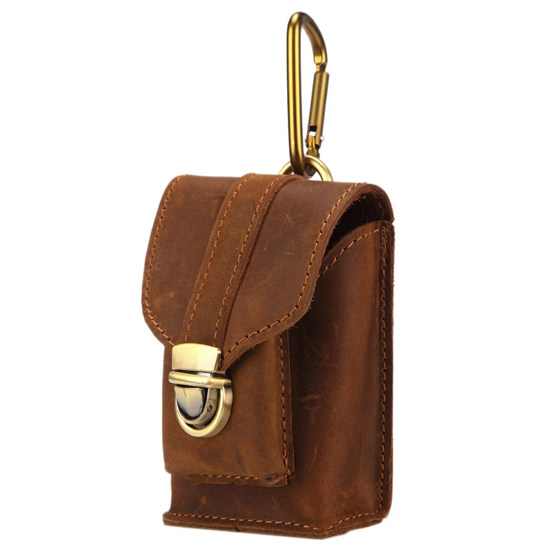 AUAU-MISFITS Men'S Small Pocket Leather Retro with Belt Buckle Leather Bag Wallet Cigarette Box